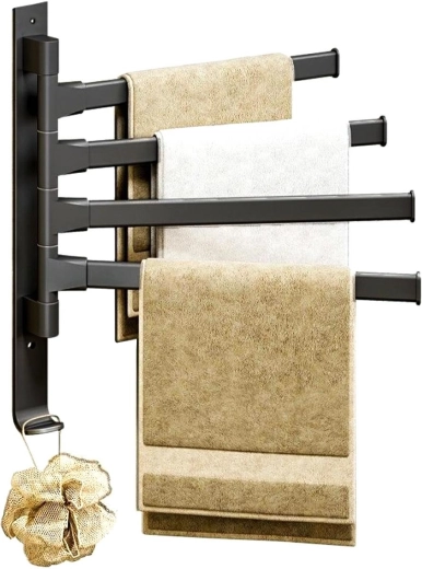 - De houder heeft vier verstelbare armen voor het ophangen van handdoeken.