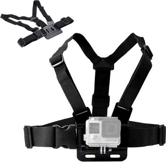 Comfortabele borstbeugel voor een GoPro-sportcamera. De borstbeugel maakt het mogelijk de camera aan de voorzijde te bevestigen. Ideaal voor sportactiviteiten, skiën en fietsen. Het universele ontwerp maakt het mogelijk elk cameramodel te bevestigen, van GoPro tot DJI, SJCAM en andere fabrikanten. Zachte en elastische banden zorgen voor comfort bij het dragen onder alle omstandigheden. In de set zitten ook een adapter en een montageschroef voor het bevestigen van een smartphone.