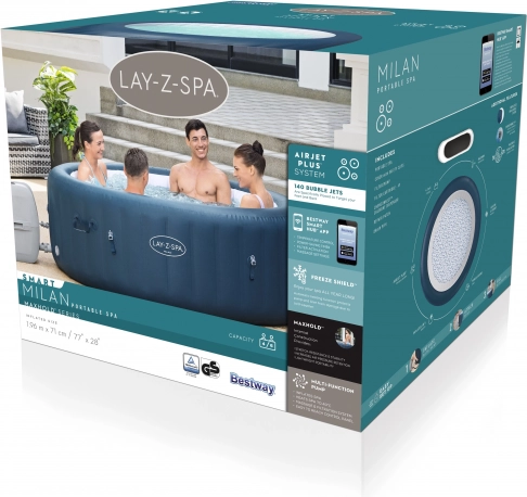 Geniet van wellness thuis met de opblaasbare jacuzzi BESTWAY Lay‑Z‑Spa Milan voor maximaal 6 personen. Biedt 140 AirJet‑luchtstralen, waterverwarming tot 40 °C, Wi‑Fi‑bediening via de telefoon en een energiezuinige werking. De duurzame DuraPlus‑constructie, geïntegreerde waterfiltratie en isolerende afdekking zorgen voor comfort, veiligheid en lage kosten.