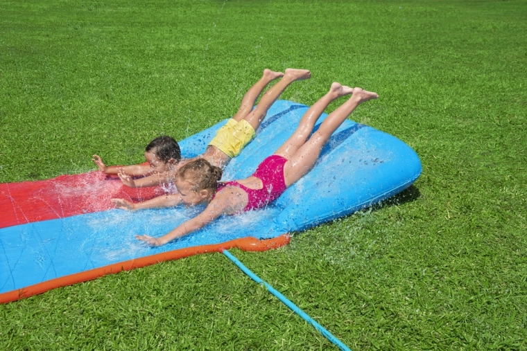 De Bestway glijbaan is een geweldige keuze voor verfrissend zomerplezier in de tuin. Gewoon uitrollen, vastzetten op de grond en aansluiten op de tuinslang. Dankzij de stevige bevestigingen blijft de glijbaan op zijn plaats en zorgen ingebouwde sproeiers voor een constante waterstroom voor maximale glijprestaties.