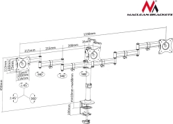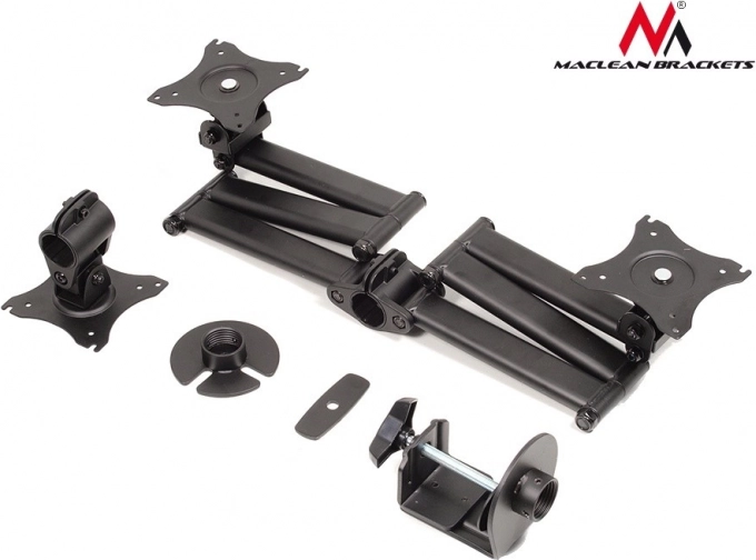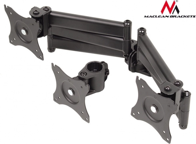 Deze hoogwaardige houder van staal en drukgegoten aluminium maakt een overzichtelijke en comfortabele plaatsing van drie monitoren op één standaard mogelijk. Dankzij de mogelijkheid om aan de rand van het bureau te klemmen met een duurzame klem is boren niet nodig; de installatie is snel en zeker. Ideale oplossing voor kantoor, thuiswerkplek en gaming-setup, waar u betere ergonomie, hogere productiviteit en een opgeruimde werkruimte waardeert.