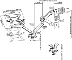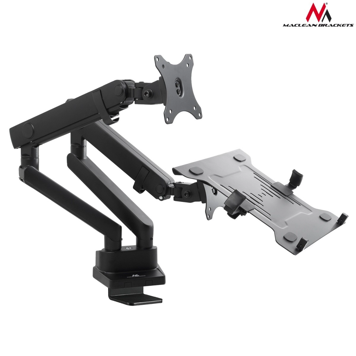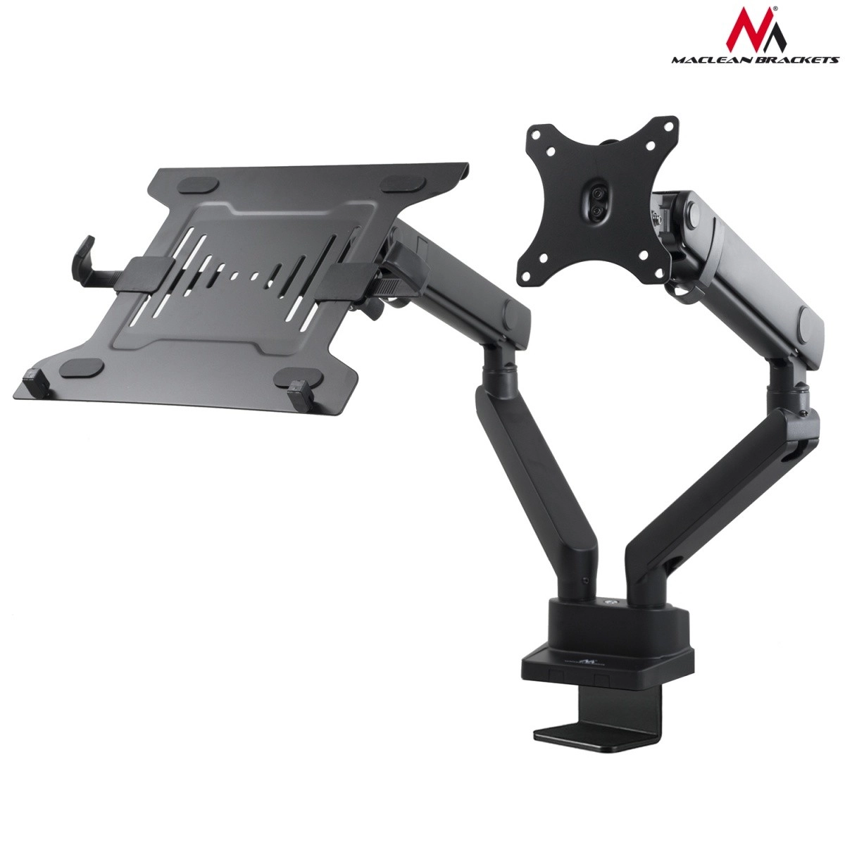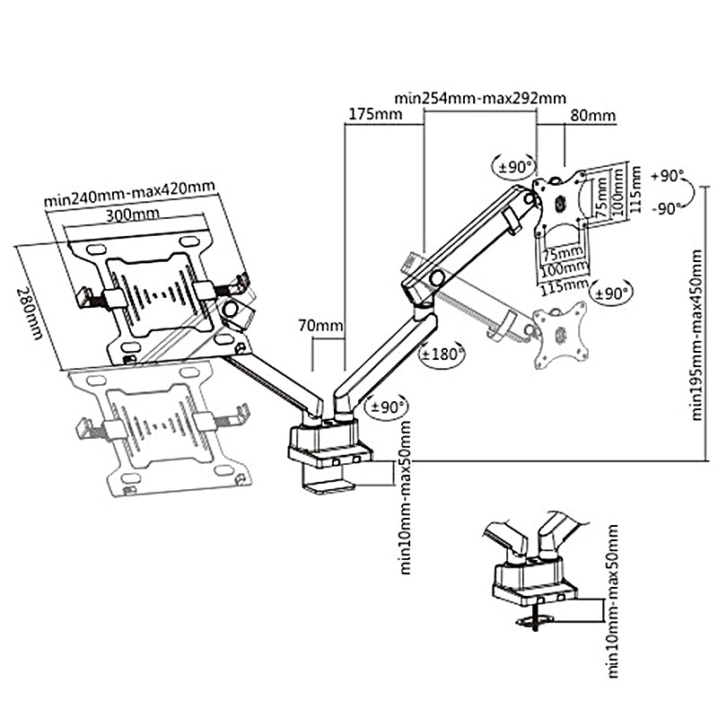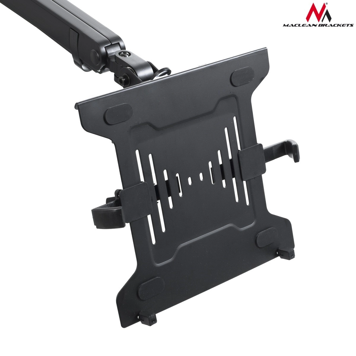 Voorzien van een laptophouder voor extra comfort en ergonomie. De hoogwaardige aluminium armen zijn uitgerust met een robuuste klem, waarmee je de arm op een bureau of andere vlakke oppervlakken kunt bevestigen zonder te hoeven boren. Ideaal voor zowel kantoor- als thuisgebruik.