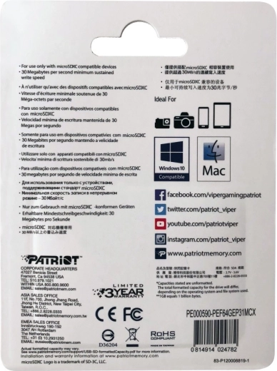 De Patriot EP A1-kaart is ontworpen voor een soepele werking van apps en snelle responstijden van apparaten. Dankzij de prestatieklasse A1 kunt u apps niet alleen opslaan, maar ook rechtstreeks vanaf de kaart starten, wat interne opslagruimte bespaart en de prestaties van de telefoon verbetert.