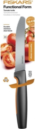 Tomatenmes Fiskars Functional Form is ideaal voor het snijden van groente en fruit met een gladde, dunne schil. Hoogwaardig Japans roestvrij staal zorgt voor een langdurige scherpte. De ergonomische handgreep met SoftGrip-coating biedt betere grip en veiligheid.