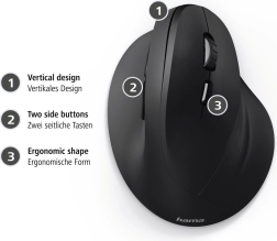 Ergonomische verticale draadloze muis voor de rechterhand met duale verbinding wl + bt