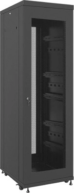 Professionele vrijstaande 19" rackkast met een hoogte van 37U en afmetingen 600 × 800 mm van het merk LANBERG, ontworpen voor stabiele montage van netwerk- en serverapparatuur. Biedt een stevige stalen constructie, hoge draagkracht tot 800 kg, volledig verstelbare diepte van de montagerails en effectieve passieve en actieve ventilatie met een 4× 230 V ventilatorpaneel in de set.