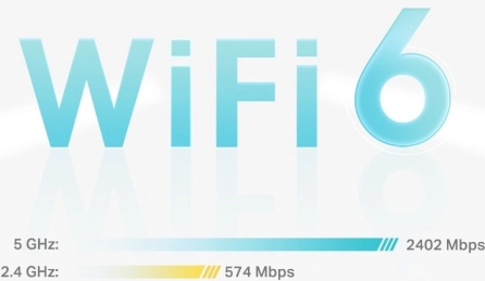 - 5 GHz: 2402 Mbps, 2,4 GHz: 574 Mbps