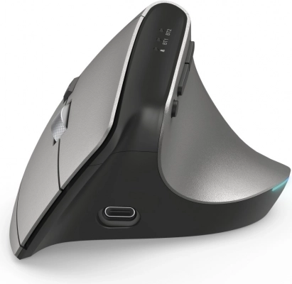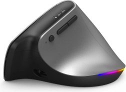 Werk comfortabeler en zonder polspijn met deze ergonomische verticale muis, die schakelen tussen drie apparaten biedt (2× Bluetooth 4.2 + 2,4 GHz), opladen via USB‑C met de mogelijkheid om te gebruiken tijdens het opladen, stijlvolle RGB‑verlichting, instelbare DPI en handige vooruit/terug knoppen voor snelle navigatie.
