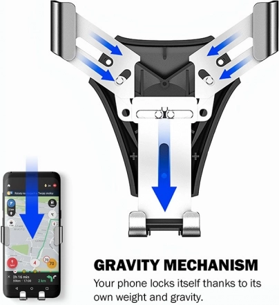 - Automatische gravitatievergrendeling – de telefoon wordt na plaatsing automatisch vastgezet.
