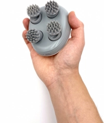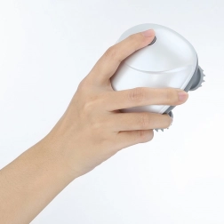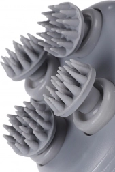 Vier roterende massagekoppen met siliconen noppen bootsen knedende vingerbewegingen na en verlichten spanning in de hoofdhuid en nek.