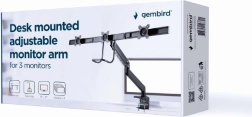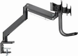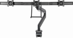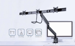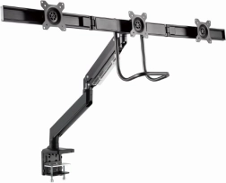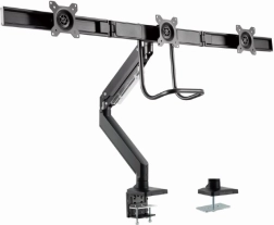 Deze verstelbare monitorhouder maakt het gemakkelijk om drie schermen naast elkaar te plaatsen, wat ideaal is voor een professionele werkomgeving. Dankzij de robuuste metalen uitvoering en flexibele armen biedt het maximale stabiliteit en aanpassingsvermogen.
