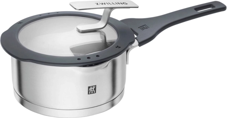 De vijfdelige set ZWILLING Simplify combineert een elegant design, hoge duurzaamheid en doordachte functies voor dagelijks koken. Glazen deksels met siliconen rand sluiten stevig, hebben een geïntegreerde zeef voor snel afgieten en kunnen verticaal worden bevestigd aan de rand van de pan – minder druppels op het aanrecht en meer ruimte tijdens het koken.