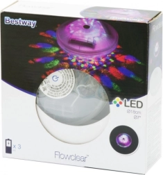 Het drijvende LED-zwembadlicht van BESTWAY is een stijlvol en praktisch accessoire voor avondzwemmen, tuinfeestjes en romantische momenten. Zonder kabels en complexe installatie zorgt het voor een sfeervolle verlichting van het wateroppervlak in 4 kleuren (rood, blauw, geel, groen) en met 7 dynamische modi. Plaats de batterijen, leg het op het water en druk op de knop.