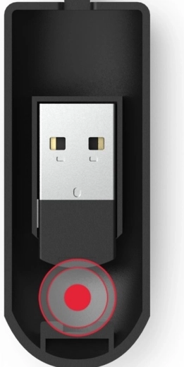 Mini USB-dongle met opberging in de behuizing en Smart-Link voor directe aansluiting zonder configuratie.