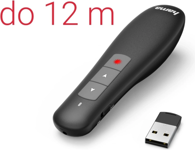 De Hama X-Pointer is een betrouwbare partner voor elke presentatie. De draadloze 2,4 GHz-technologie zorgt voor een stabiele verbinding met een bereik tot 12 meter, zodat je vrij door de ruimte kunt bewegen. De geïntegreerde rode laser laat je snel en duidelijk de kernpunten op het scherm benadrukken.