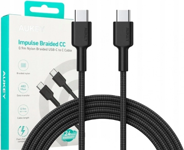 Duurzame AUKEY USB‑C ↔ USB‑C kabel van 0,9 m biedt snelladen tot 60 W (Power Delivery), stroom tot 3 A en hogesnelheids gegevensoverdracht. Dankzij de nylon vlecht, vergulde connectors en meerlaagse afscherming is hij ideaal voor dagelijks gebruik thuis, op kantoor en onderweg.