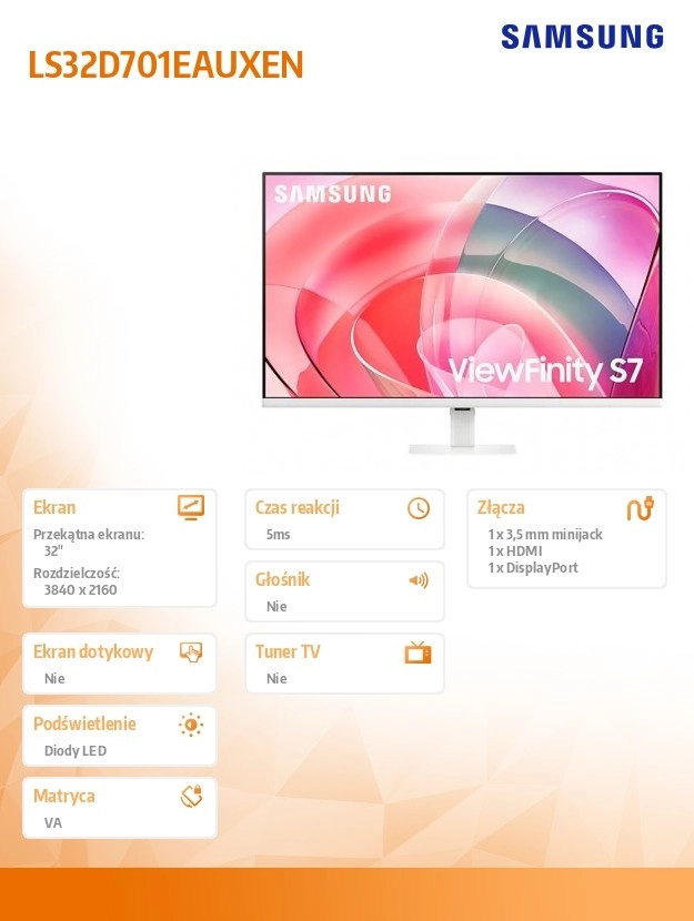 Stijlvolle 32" monitor met UHD 4K en VA-paneel levert een fijn beeld, diepe zwarttinten en hoog contrast. Biedt HDMI en DisplayPort, PiP/PbP-modi voor multitasking, een responstijd van 5 ms en een verversingssnelheid van 60 Hz. Het elegante witte design past perfect in een moderne kantooromgeving en thuiskantoorhoek.