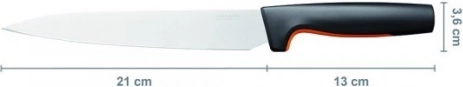 - Vleesmesser Functional Form van het merk Fiskars met een lang, recht lemmet.