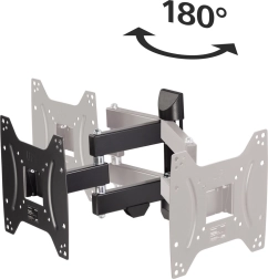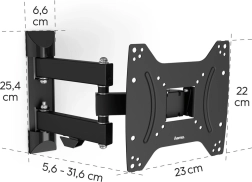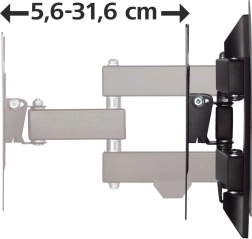 Compatibel met VESA-standaarden van 75x75 tot 200x200 mm, geschikt voor een tv-gewicht tot 20 kg. De maximale en minimale afstand tot de muur is respectievelijk 31,6 cm en 5,6 cm, wat aanpassing aan individuele voorkeuren garandeert. De zwarte kleur van het stalen plaatmateriaal past moeiteloos in de meeste interieurs.