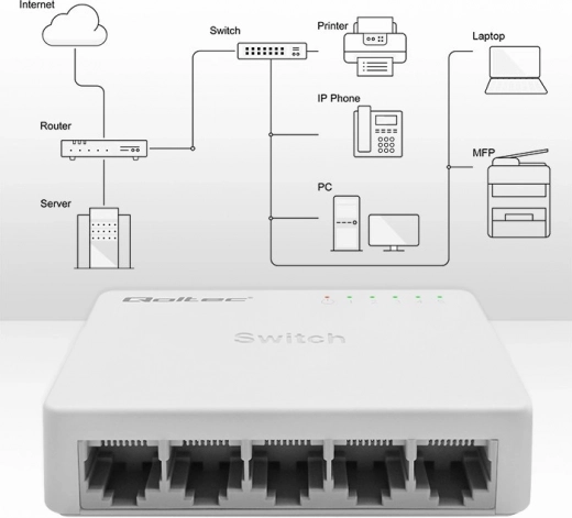 Ontdek het volledige potentieel van uw multimediasysteem. Deze gigabit-switch van QOLTEC zorgt voor stabiele en vloeiende data‑switching en maakt het mogelijk om een signaal van één bron naar tot vier apparaten tegelijk te distribueren. Ideaal voor films, games en presentaties – zonder complexe configuratie of extra kosten.