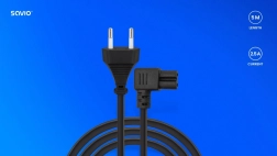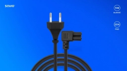 Hoogwaardige haakse voedingskabel Savio CL-186 met een lengte van 5 m voor betrouwbare voeding van laptops en RTV-apparaten. Biedt universele inzetbaarheid, gemakkelijke aansluiting in krappe ruimtes en lange levensduur dankzij koperen geleider. Connectoren IEC C7 en CEE 7/16 (type C) zorgen voor brede compatibiliteit.