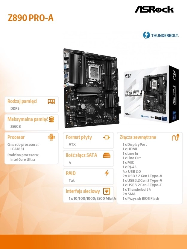 Bouw een modern pc-systeem op het Z890 PRO-A ATX-bord, met focus op stabiliteit, duurzaamheid en topklasse prestaties. De robuuste vermogenssectie 16+1+1+1+1 met Dr.MOS levert schone voeding voor zowel de processor als de geïntegreerde grafica, terwijl hoogwaardige componenten en beschermingen bijdragen aan een lange levensduur. Dankzij ondersteuning voor DDR5 Dual Channel met overklokken tot 8666+ (OC) behaal je maximale bandbreedte voor veeleisende apps en games.