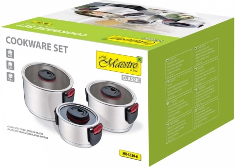Set roestvrijstalen pannen met inklapbare handgrepen Maestro