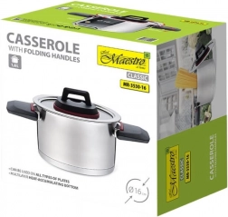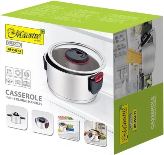 De Maestro pan is gemaakt van roestvrij staal, wat duurzaamheid en corrosiebestendigheid biedt. Compatibel met alle soorten kookplaten, inclusief inductie, gas, elektrisch en keramisch, is het een universele keuze voor elke gebruiker.