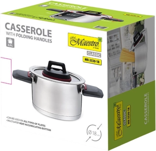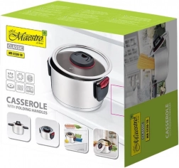Roestvrijstalen pan Maestro biedt kwaliteit en efficiëntie in uw keuken dankzij de constructie van hoogwaardig roestvrij staal. Dankzij de meerlagige thermische bodem is de warmteverdeling gelijkmatig, wat energie bespaart en de kookresultaten verbetert. Het glazen deksel met stoomopening stelt u in staat om te koken zonder het deksel onnodig op te tillen.