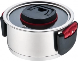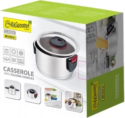 De pot is uitgerust met een glazen deksel met stoomafvoeropening, waardoor het mogelijk wordt om het kookproces te volgen zonder het deksel voortdurend op te tillen. Dankzij de inklapbare handgrepen kan de pot eenvoudig worden opgeborgen en waardevolle ruimte in de keuken besparen.