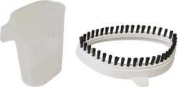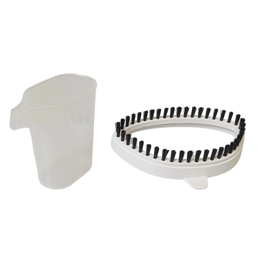 In de verpakking zitten een stoffenborstel en een maatbeker voor eenvoudig bijvullen van water. De antikali-functie verlengt de levensduur van het apparaat.