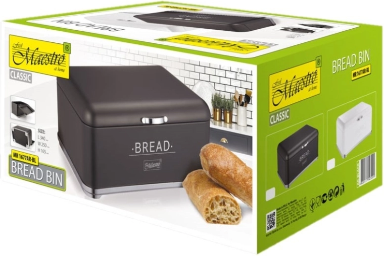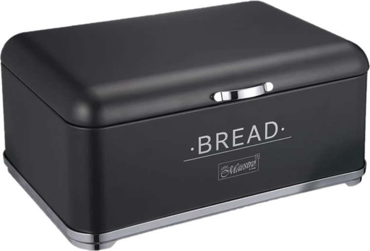 De Maestro broodtrommel is gemaakt van hoogwaardig roestvrij staal, wat zorgt voor een lange levensduur en duurzaamheid. Het elegante zwarte design met verchroomde details geeft je keuken een moderne uitstraling en het ergonomische ontwerp maakt het gebruik eenvoudig. De broodtrommel is ontworpen om brood en banket te beschermen tegen uitdroging en schimmelvorming, waardoor de houdbaarheid wordt verlengd.