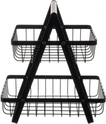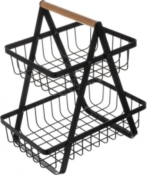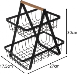 Praktische rek met twee niveaus van duurzaam staal met een comfortabele houten greep helpt je fruit, groenten en snacks overzichtelijk te organiseren. Dankzij de hoge randen blijven etenswaren veilig op hun plaats en zorgt de brede basis voor stabiliteit, zelfs bij volledige belading.
