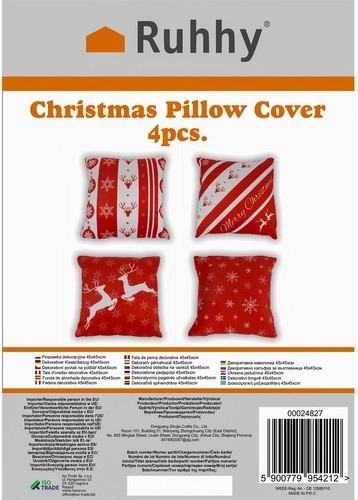 Creëer thuis een warme feestelijke sfeer met een set van vier decoratieve kussenhoezen 45 × 45 cm in rood‑wit. De hoezen hebben een zachte pluche afwerking, zijn prettig aan te raken, bestand tegen pillen en gemakkelijk te onderhouden. De praktische verborgen ritssluiting maakt snel omhullen en verwijderen mogelijk. Ideaal voor standaard vullingen van ca. 40 × 40 cm met elegante kerstmotieven voor een uniforme look in de woonkamer.
