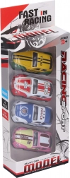 Set van 4 metalen raceautootjes, 7 cm, met terugtrekmechanisme