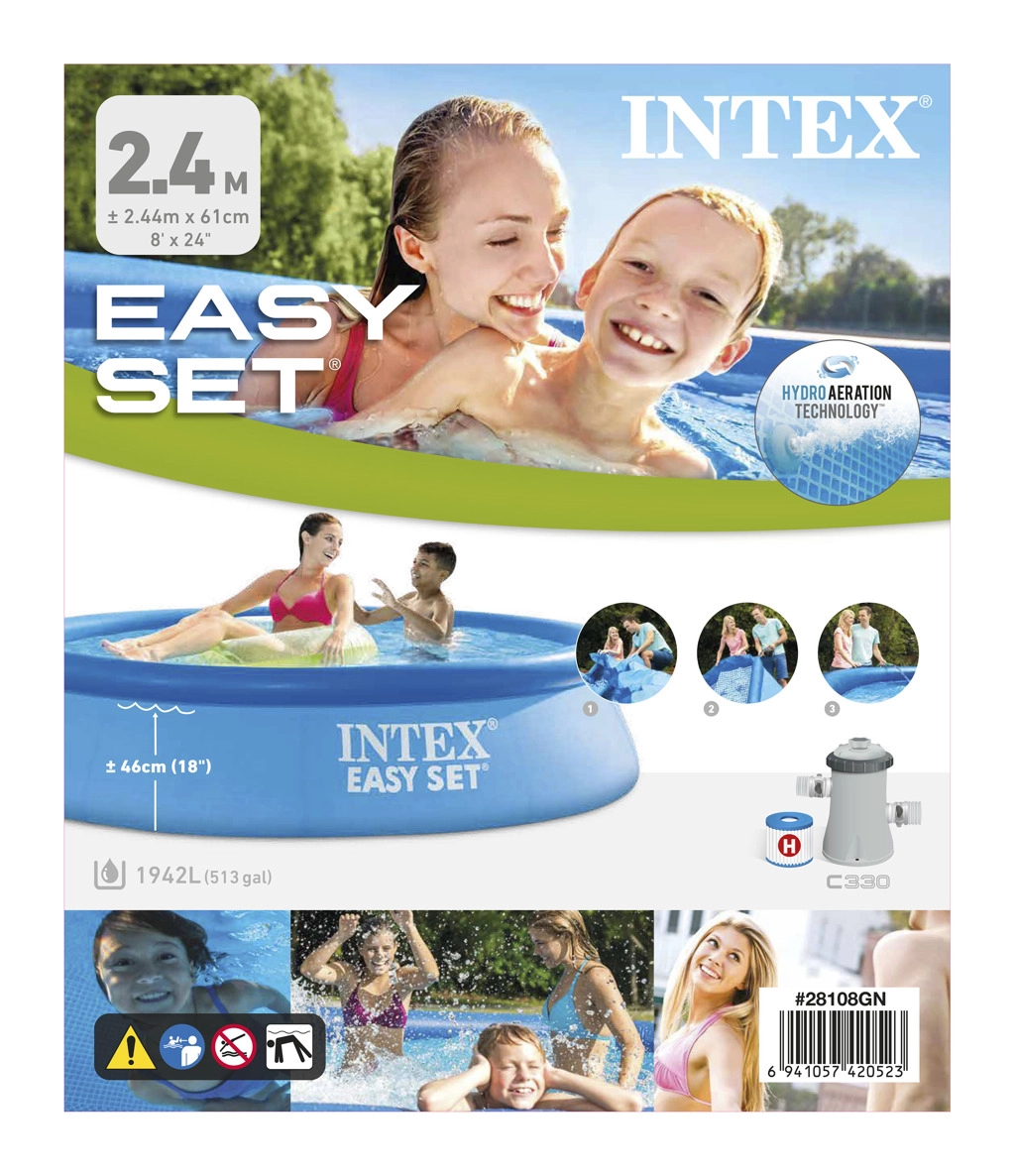 Geniet van de zomer met het familiezwembad Intex Easy Set 244 × 61 cm, dat uitblinkt door snelle montage in 10 minuten, duurzaam 3‑laags PVC en inclusief filterpomp. Een geweldige keuze voor de tuin, met eenvoudig onderhoud en een stabiele constructie met een waterinhoud tot 1.942 l.