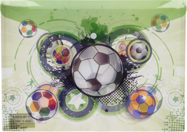 Praktische plastic map met druksluiting van 35,8 × 26 cm die je A4-documenten veilig beschermt. Ideaal voor school en kantoor, met aantrekkelijke sportmotieven met een bal en een comfortabele druksluiting. Biedt snelle toegang, bescherming tegen kreukels en vocht en 4 verschillende designs voor elke sportliefhebber.