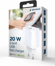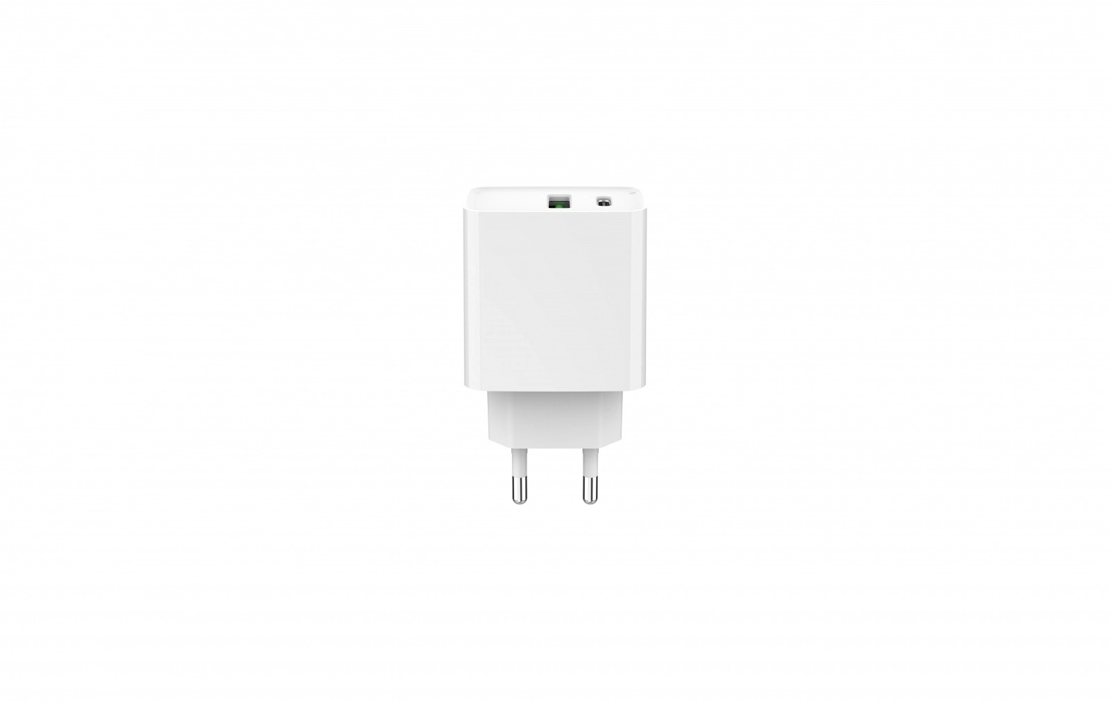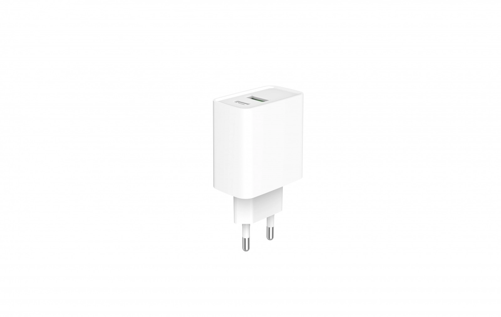 Ontdek de kracht van snel opladen met onze witte USB-oplader, die 20W vermogen biedt voor uw smartphones en apparaten. Twee poorten - USB-A en USB-C - maken flexibele aansluiting en snel opladen van de meeste moderne apparaten mogelijk.