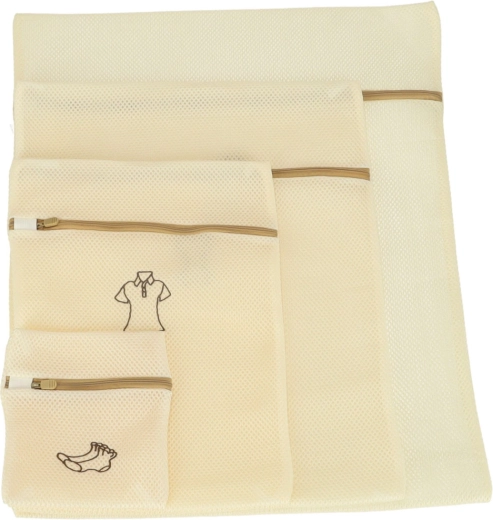 Bescherm je delicate was met een praktische set van 6 waszakken van netstof. De verschillende maten zijn geschikt voor beha’s, sokken, panty’s, T‑shirts en broeken. Het duurzame net zorgt voor een vrije doorstroming van water en wasmiddel, terwijl de ritssluiting de was veilig binnenhoudt voor een zachte en effectieve wasbeurt.