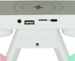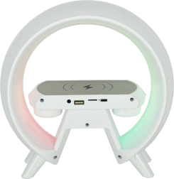 Dit lampje helpt ruimte te besparen, ideaal voor kleine ruimtes of nachtkastjes. De draadloze oplaadtechnologie is beschikbaar wanneer het op het lichtnet is aangesloten.