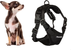 Dankzij de meerpuntverstelling pas je het tuig eenvoudig aan de lichaamsvorm van een kleine hond aan. Geïntegreerde reflecterende elementen verbeteren de zichtbaarheid bij schemering, wat de veiligheid op de stoep en in het park verhoogt. In de verpakking vind je ook een afneembare riem van 150 cm met een stevige metalen karabijnhaak.
