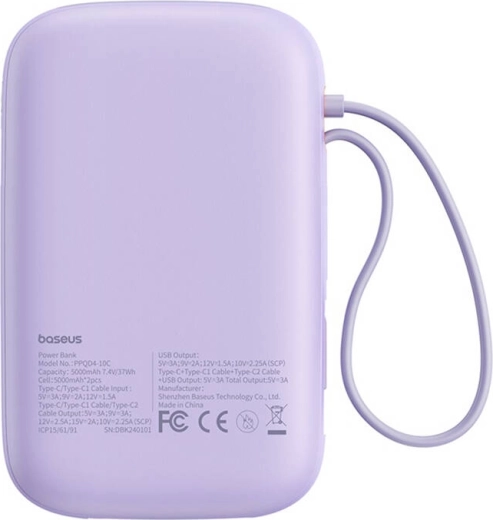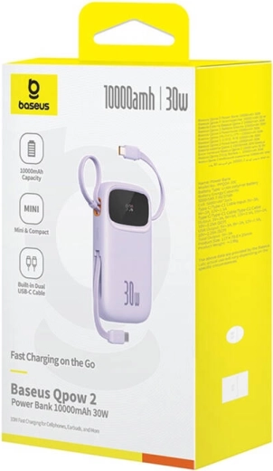 Geniet van vrijheid en prestaties in één. BASEUS QPow 2 combineert een hoge capaciteit van 10000 mAh met uitgang tot 30 W voor razendsnel bijladen. Dankzij het compacte formaat, de praktische polslus en de geïntegreerde USB‑C‑kabel neem je hem makkelijk mee in je zak of rugzak.