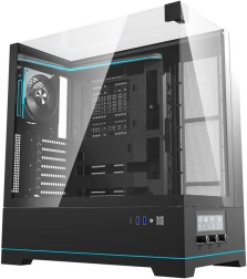 De Darkflash DY450 PRO computerbehuizing valt op door zijn moderne zwarte design en glazen zijpanelen, die een prachtig zicht bieden op uw componenten. Deze behuizing heeft doordachte koelkenmerken, waaronder ondersteuning voor tot zeven ventilatoren en de mogelijkheid tot waterkoelinginstallatie. Bovendien is het uitgerust met ARGB verlichting die 23 verschillende modi biedt voor volledige personalisatie.