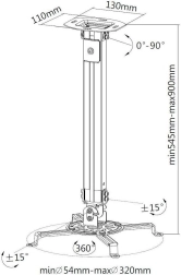 Deze elegante en betrouwbare plafondbeugel voor projectoren is ontworpen voor universele compatibiliteit en eenvoudige installatie. Dankzij de telescooparm met een bereik van 55–90 cm plaats je de projector precies waar je hem nodig hebt, terwijl de stevige staal-aluminiumconstructie stabiliteit en een lange levensduur garandeert.