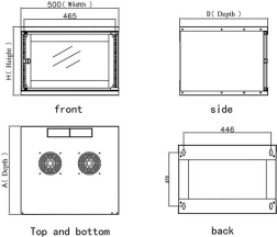 De kast is ontworpen met focus op koeling en bekabeling. Perforaties in bodem en dak maken de installatie mogelijk van tot twee 120×120 mm ventilatoren aan elke zijde, terwijl kabeldoorvoeren van 225×45 mm (boven en onder) het kabelmanagement vereenvoudigen. De deur kan worden omgezet naar links- of rechtsdraaiend, en de achterzijde is open voor gemakkelijke toegang en ventilatie.
