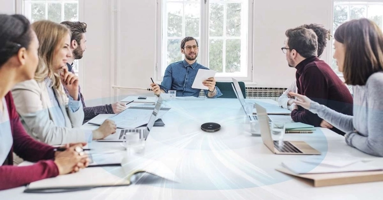 De microfoon vangt elk geluid op binnen een straal van 6 meter, ideaal voor middelgrote en grotere vergaderruimtes.
