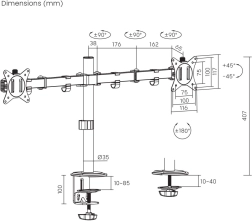 Deze universele bureausteun is bedoeld voor de installatie van twee LCD-, LED- of monitoren van diverse merken met een schermdiagonaal van 17" tot 32". Grotere schermen kunnen worden gemonteerd zolang het maximale gewicht niet wordt overschreden en ze voldoen aan de VESA-standaard. De houder draagt bij aan meer werkcomfort dankzij de mogelijkheden voor kantelen, roteren en in hoogte verstellen, wat de ergonomie en zichtbaarheid optimaliseert.