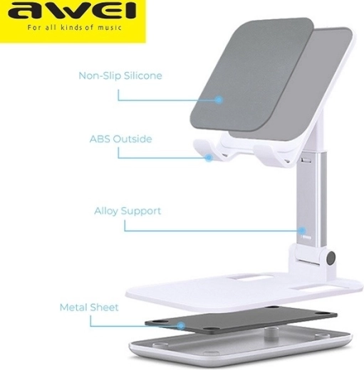 De AWEI X11 is een praktische bureaustandaard die een elegant design combineert met hoge functionaliteit. Kwalitatieve materialen (PC, ABS en een aluminiumlegering) zorgen voor duurzaamheid en stabiliteit, terwijl siliconen elementen je apparaat beschermen tegen krassen en een stevige grip garanderen.