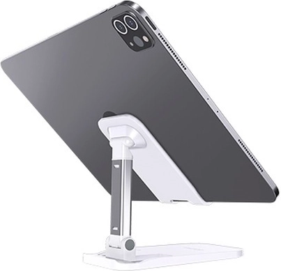 De universele bureaustandaard AWEI X11 in het wit biedt een stabiele en verstelbare oplossing voor smartphones en tablets thuis en op kantoor. Dankzij de hoogteverstelling van 11–15 cm, de mogelijkheid tot hoekverstelling en de antislip siliconen bescherming zorgt hij voor comfortabel video’s kijken, lezen en videobellen. Het opvouwbare ontwerp maakt meenemen en opbergen eenvoudig.