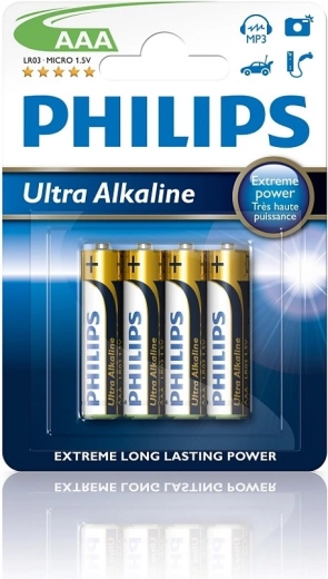 Hoge prestaties van Philips alkaline AAA-batterijen zonder cadmium, kwik en lood voor langdurige energie in alledaagse apparaten.